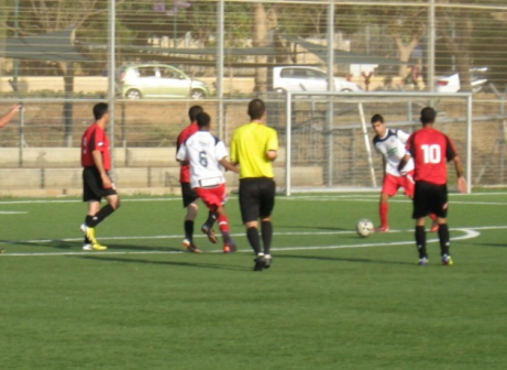 רמת ישראל פתחה את המשחק בסערה. בדקה ה-5 ניצב אייל דואק מול השוער אך החטיא. בדקה ה-7 היה זה תורו של דני טולמסוב להחמיץ כאשר קיבל כדור מדואק כשהוא ברחבה, בעט ושוער מחניים הדף מצויין לקרן. בדקה ה-15 יכלה הייתה מחניים להפתיע אך שחקניה החמיצו בזה אחר זה הזדמנויות על קו השער.