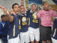 אילת חוגגת בחדר ההלבשה נצחון ענק.(צילום:מאיר אוחיון)
