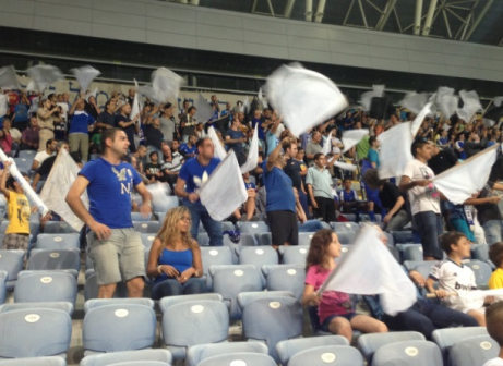 את פני קידם היציע המזרחי שהיה עמוס בדגלי הכחול – לבן ומקושט בבלונים. ראיתי ילדים והרבה נשים יחסית שהוכיחו כי אצטדיון משוכלל ומפואר בהחלט יכול למשוך קהל ולהפוך את הצפייה בכדורגל לחוויה לכל המשפחה.