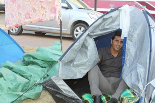 לירון פרטוק שחקנה של נבחרת ישראל ויהלומי "דורון מוטורס" נתניה בכדורגל חופים הגיע לתמוך במפגינים במאהל המחאה נגד מצוקת הדיור.