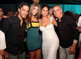 הזוג המאושר אביהו ושני כהן. ניסן כהן (מימין)שחקן נוער מבטיח מגדנע יהודה תפס תמונה עם שוער בית"ר ירושלים בן הרוש ועידן ורד (משמאל)ששתה "מעט" והיה "בראש טוב" מזל שלא היה מחזור ליגה (פגרת הנבחרת ) "הפירמידה" אסי בלדוט מרים את עידן ורד ואז הגיע החבר אמנון עזרא שהרים את שניהם .החתן אביהו דאג לשמור על שיווי משקל ובריאות השחקנים...
