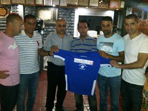 בתמונה – רובי אבוהב נציג חברת דיאדורה מעניק את חולצת המשחק של "סווטש" ת"א לבעלים של המועדון – אלון "האווירון" מזרחי.