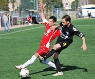 איציק לוי(באדום)ואסף דהן מפתח תקוה במאבק על הכדור.(צילום:אמיר דבי)