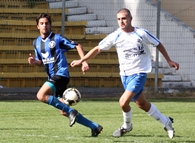 שחר משה(בלבן)ויוני קים ממבשרת במאבק על הכדור.(צילום:לירן דורף)