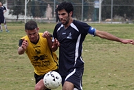 יוני זכריה(בכחול)מקדים בראש את עמוס לגאלי מהפועל.(צילום:לירן דורף)