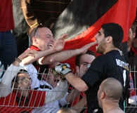 שחקני קטמון באקסטזה עם האוהדים. דקה אחת זה החזיק מעמד.(צילום:אנס אבודעבס)