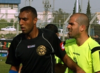 מאור פחימה שומר צמוד צמוד על ואסים אגברייה מחדרה.(צילום:שלומי גבאי)