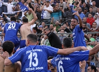 שחקני הפועל בלדי עם אוהדיהם בסיום. החגיגות רק התחילו ביציעים.(צילום:אנס אבודעבס)