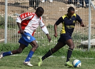 אשרף אלקסאסי בדרך לחמוק ממשה הובגן ולהחמיץ מול שוער.(צילום:אנס אבודעבס)