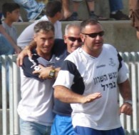 שוקי ברשון ,כובש הראשון של הרצליה ,מביע את שמחתו על הביצוע ( צילום:בועז רביד)