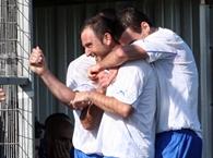 דודי בכר(בכחול),שער נצחון בדקה ה-90 לזכות רמת גן.(צילום:לירן דורף)