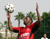אילן טפרה(באדום)הצטיין עם צמד פרטי בנצחון על יפו.(צילום:לירן דורף)