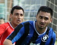 אלון אברמוביץ'(בכחול)קרוב קרוב ליוני אוחיון מחדרה.(צילום:שלומי גבאי,חדשות חדרה)