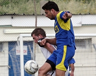 אלנור אלייב(בלבן)ויוסי יפרח מאור יהודה רודפים אחרי כדור.(צילום:לירן דורף)