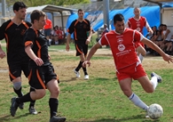 איתי כספי(באדום)ואבישי סעדה מפרדסימה במבט נוגה על הכדור.(צילום:אמיר דבי)