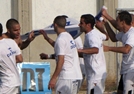 השחקנים בחגיגות ההקפה עם הדגל.(צילום:שובל ירושלמי)