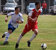 שגיא קרופמן(בלבן)ויוסי ימיני מהשיכון רוצים כדור.(צילום:אמיר דבי)