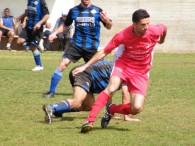 שוער מכבי סמיע, סלים עלוואן בולם את פאדי בדארנה (באדום). שחקני הפועל יצאו מריכוז.