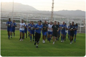 עושים חימום באימון הראשון של הקבוצה בליגה א' דרום (צילום:אלון יהב)