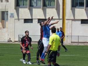 איתי עמר (בתכלת) מחפש את הכדור. בישל את השער השלישי (צילום: רמזי בדיר dewancom)