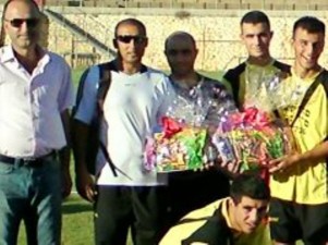 שחקני בועיינה עם השי לחג. גמלו על המגרש.