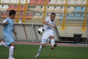בני שרקט ממכבי יפו (בלבן) מול קבוצתו לשעבר היום בגביע (צילום:שלומי גבאי)