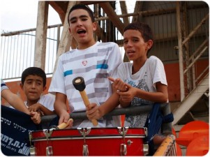 אוהדי נתיבות המסורים ,חלקם ילדים שטרחו והגיעו לשכונה ,נהנו מהצגת כדורגל (צילום:בועז רביד)