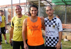 שלושת הכובשים לאחר המשחק ,משה אסולין(מימין)תומר עיוואן ודודי בכר (צילום:דני מלניצקי)