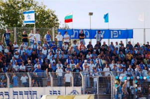 אוהדי יפו באקסטזה לאחר כיבוש השער. תצוגת עידוד נדירה (צילום: בועז רביד)
