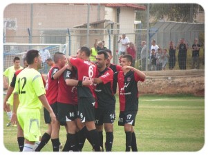 שחקני קטמון חוגגים את השער של שי אהרון. היה הבולט במחצית השנייה (צילום: רועי אלחנני)