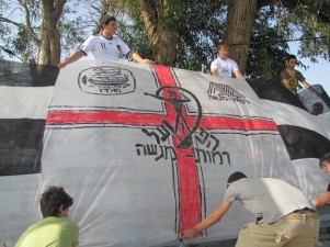 השלטים שקדמו את פני השחקנים. האוהדים התכוננו מבעוד מועד (צילום: עמוד הפייסבוק של רמות מנשה)