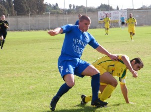 שי טרונך וזיו קריאף במירוץ לכדור.מחצית שנייה חלשה של שתי הקבוצות (צילום: שמעון לוי)