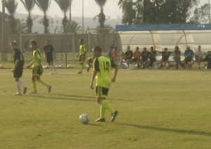 ישראל דרור (בצהוב) מנסה למנוע מטירן בניסטי לקבל מסירה. מנשה ניסתה לעקוץ (צילום: מולי לוי)