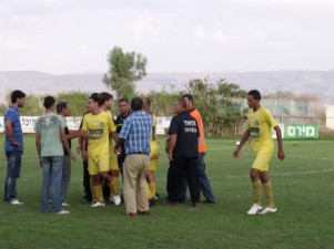 עשרים דקות לסיום התעורר המשחק סוף סוף. שחקן בקה שכב פצוע על הדשא, שחקני בית שאן לא הוציאו את הכדור עד אשר השופט עצר את המגרש. הדבר גרם להתלהטות יצרים כששחקני בקה תוקפים ומאשימים את אלו של בית שאן שלא נשארו חייבים ובמגרש התפתחה תקרית שהזעיקה את כוחות האבטחה לכר הדשא. לאחר 5 דקות של הפסקה חודש המשחק כשהשופט בוחר לסיים את התקרית עם צהוב לדביר תורג'מן המקומי ולעווד עבדאללה כובש השער.