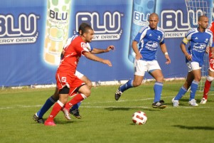 יניב דרעי(באדום) כובש הצמד לגלבוע מול בלם גלבוע דני אסולין (צילום יניב ליכט)