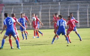 אדינו ימהראן (באדום) בורח ממידן שטיינברג ושלומי עשור. ריח של שער היה באוויר (צילום: מוחמד חאדר אניס)