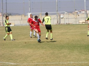 יוחאי כהן מסוכך על אבי עמר. אתא שיחקה משוחרר (צילום: מוחמד חאדר אניס)