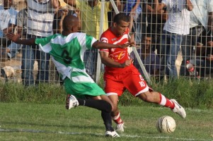 אסי אסולין בועט לשמיים מול שלבי. מחצית ראשונה קצבית (צילום: אנס אבודעבס)