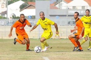 מאמן מלאכי, דקל מלכה חוגג את השער הראשון. טעויות בהגנת נתיבות (צילום: שי מוגילבסקי)