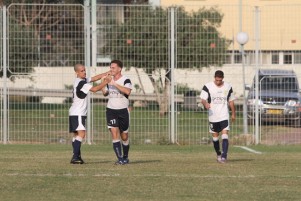שחקני עירוני בית דגן חוגגים עוד ניצחון בדרך להתבססות בצמרת ליגה ג' מחוז מרכז (תצלום: ניר חורי)