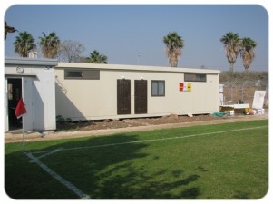 מבט חיצוני על מתחם חדרי ההלבשה. משלים את התפאורה ליד הטריבונה החדשה (תצלום: יואב מלכה)