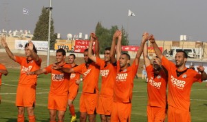 חגיגות שחקני קרית מלאכי היום.אף אחד לא יכול לעצור אותם (צילום:אנס אבודעבס)