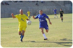 שחקני שתי הקבוצות פתחו את המשחק בזהירות. שלומי אדרי מהשקמה (בצהוב) מול אלעד שרף מערד (תצלום: שי מוגילבסקי)
