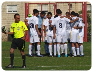 ברק קודיש (בשחור) עם הכדור שחקני טבריה בכוננות (צילום עודד חסין)