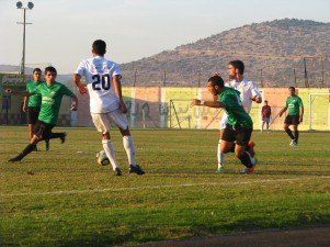 שחקני שתי הקבוצות תקפו ללא הרף. קפטן כפר קנא, מחמוד עבדאלה (בירוק) ושחקן טבריה, כפיר בן דוד (בלבן) (תצלום: עודד חסין)