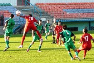 אודינקה מנסה לנגוח לשער. פאריד טאהר משקיף. פתיחת משחק חלשה.