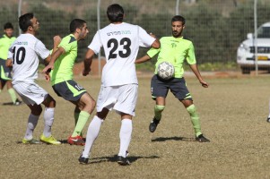 רע אשד בועט לעבר שעה יבנה. כבש לאחר סדרת החמצות של יבנה (צילום: ניר חורי)