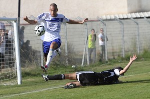 ההזדמנות הראשונה במשחק. רמי צבי משכין את הכדור ברשת (צילום: ניר חורי)
