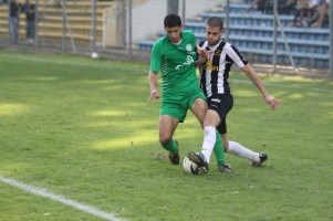 יובל בלאיש מימין כובש הצמד לזכות כפר שלם חולף על פני מגן עמישב(צילום שלומי גבאי)
