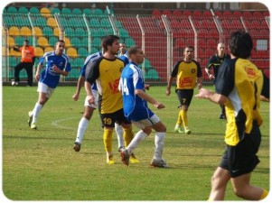 ניסן רביבו(בכחול )במאבק על הכדור עם מגן אום אל פאחם(צילו:מוחמד חאדר אניס)